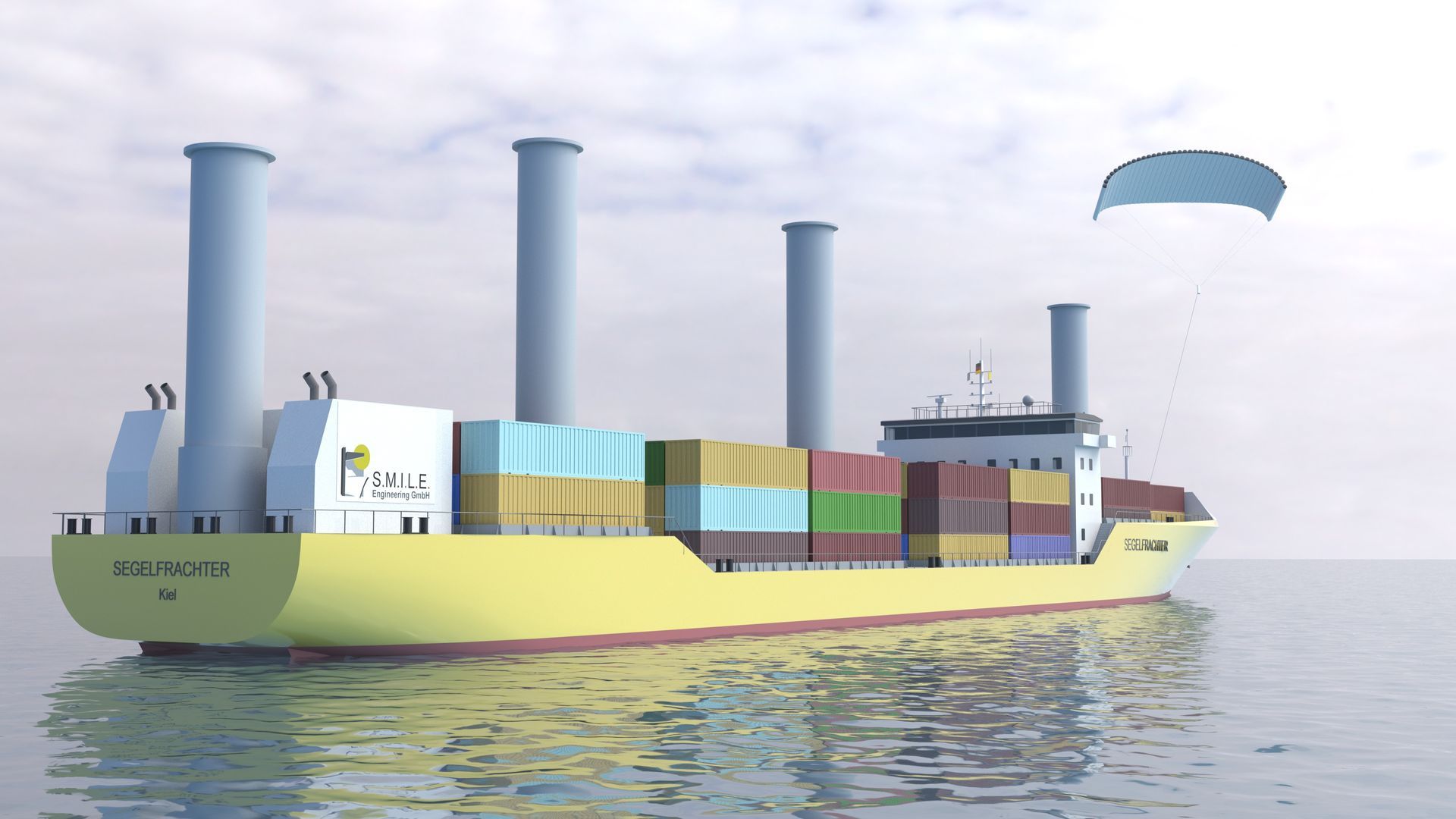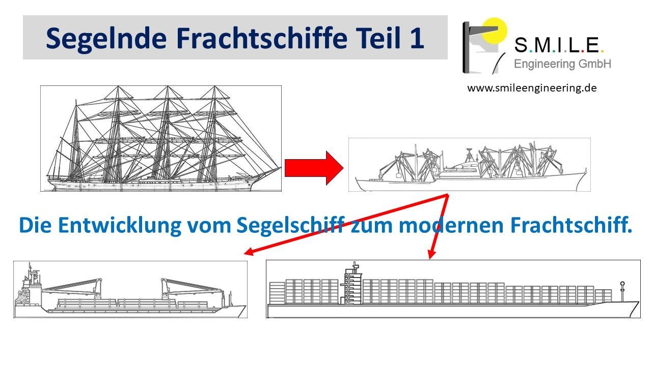 Die hier gezeigten Bilder zeigen technische Ansätze für Gestaltung eines modernen, segelnden Frachtschiffes.