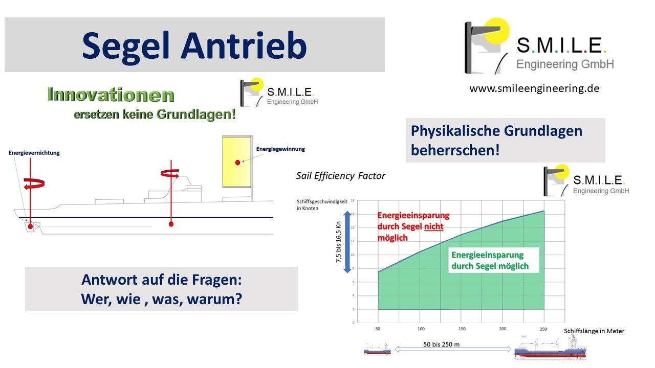 Seit 1988 beschäftigen wir uns mit dem Gesamtwirkungsgrad des Systems eines segelnden Frachtschiffs. Mit diesem Wirkungsgrad lässt sich die Leistungsfähigkeit der Zusatzbesegelung und damit die mögliche Energieeinsparung des segelnden Frachtschiffs, unabhängig von Kurs- und Wetterbedingungen, bestimmen.