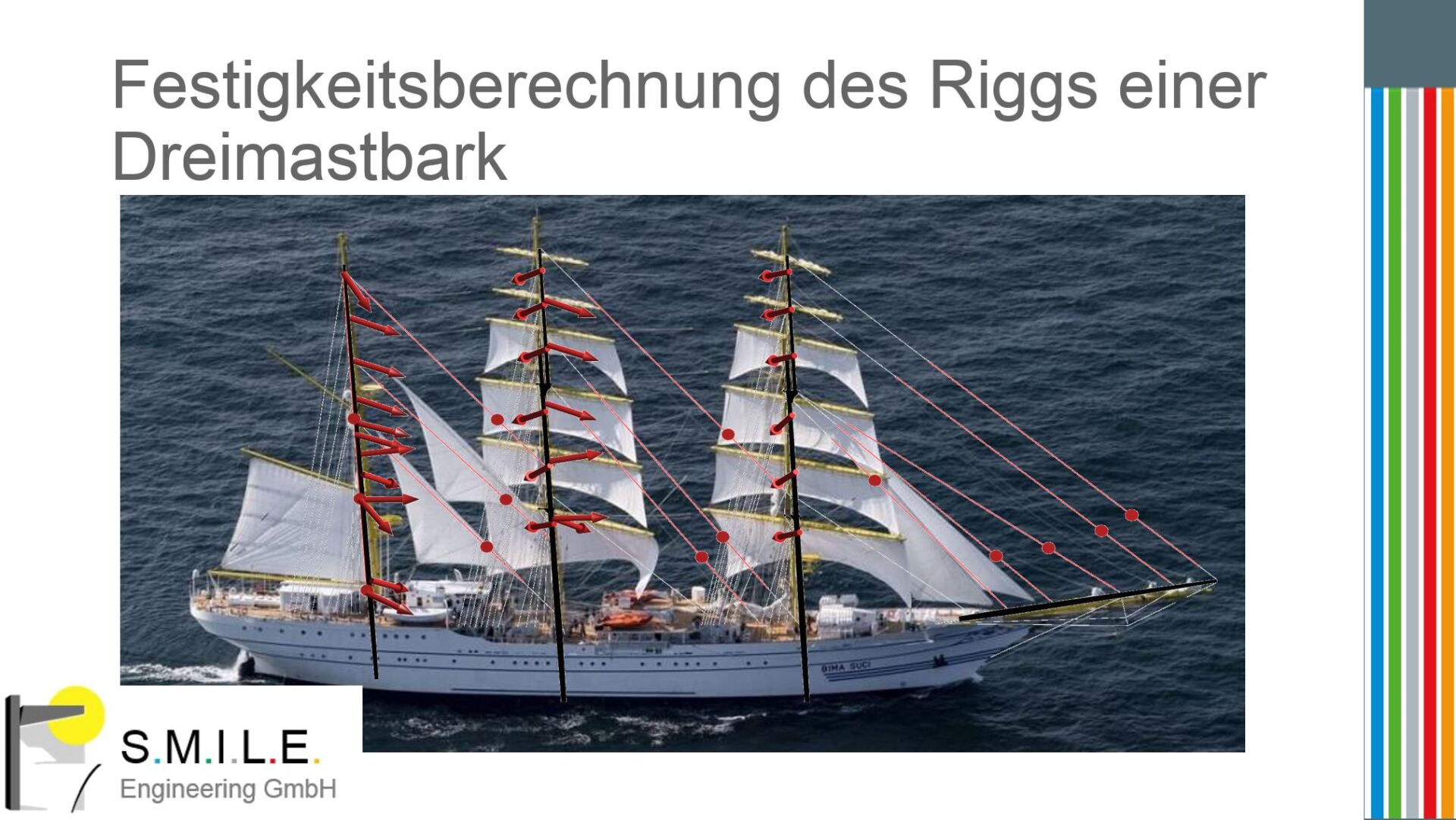Die Durchführung von Festigkeitsberechnungen an einem Rigg für einen Traditionssegler.